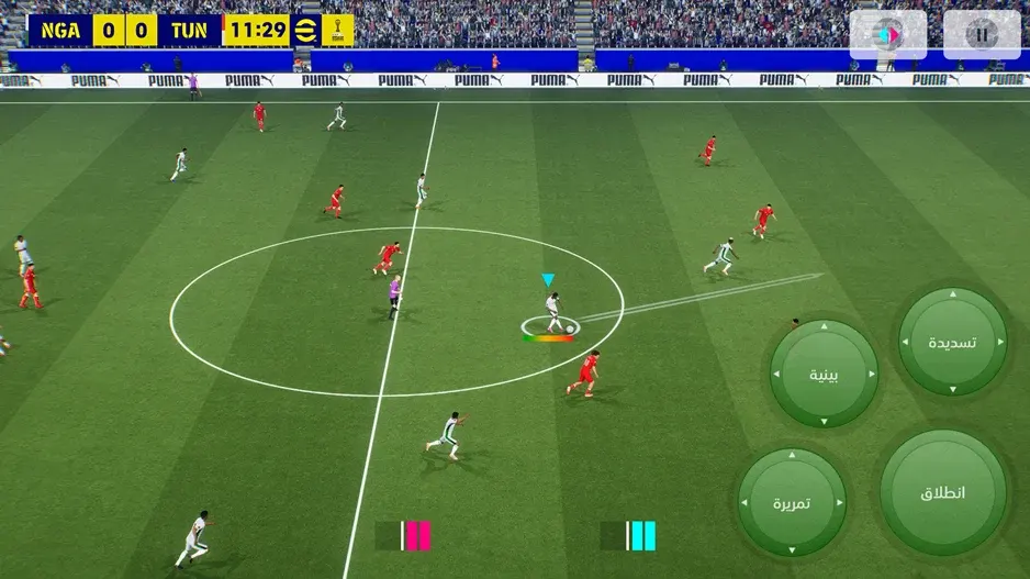 تحكم سلس — تمرير، مراوغة، ضغط عالي وهجمات مرتدة. الفروقات بين اللاعبين واضحة حسب السرعة والقوة والقدرة على التحكم تحت الضغط.