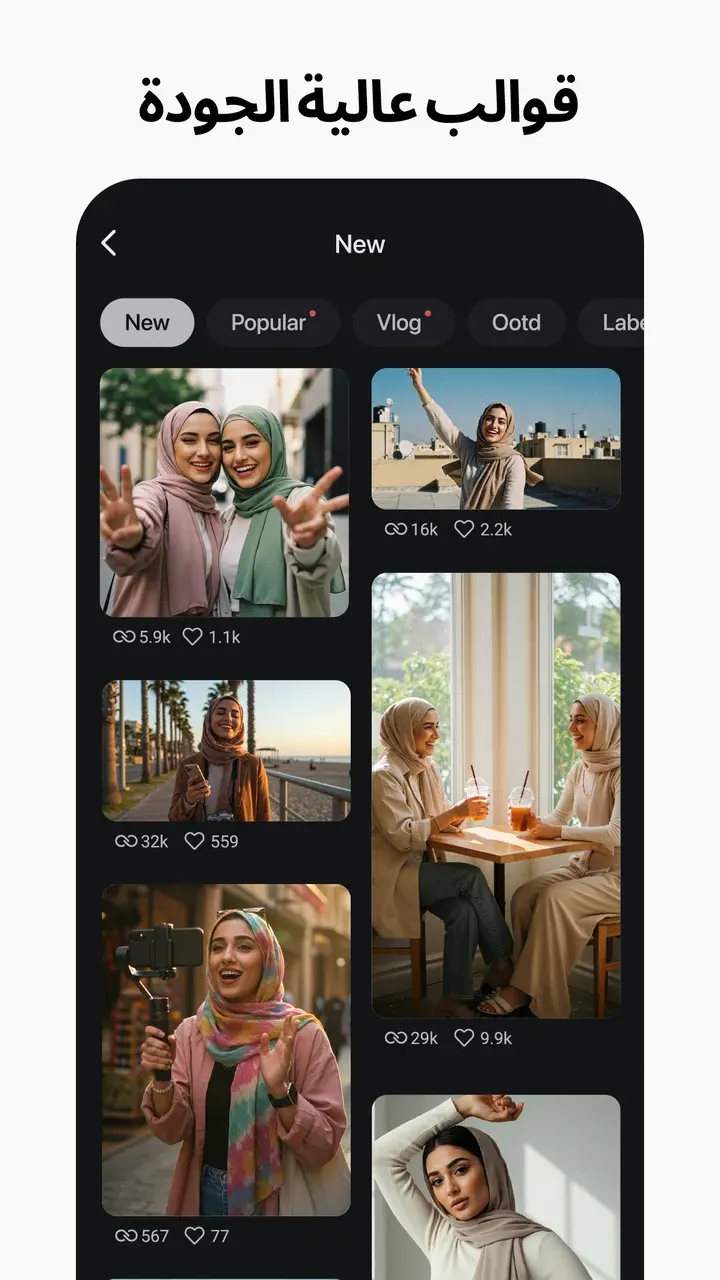 مناسب لفيديوهات يوتيوب، تيك توك، ريلز، الإعلانات والعروض التقديمية مع حفظ تلقائي للمشاريع.