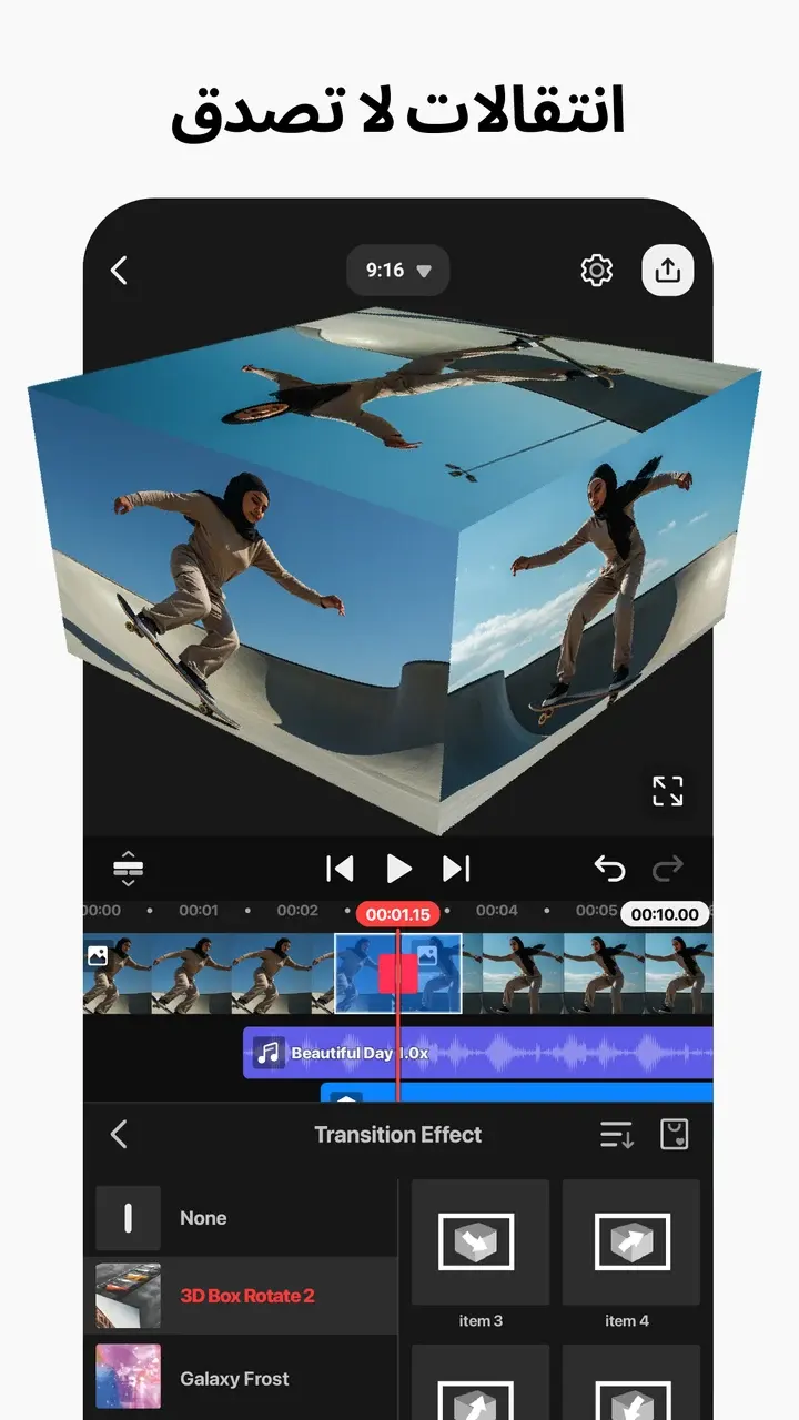 - تأثيرات وانتقالات وضبط ألوان احترافي