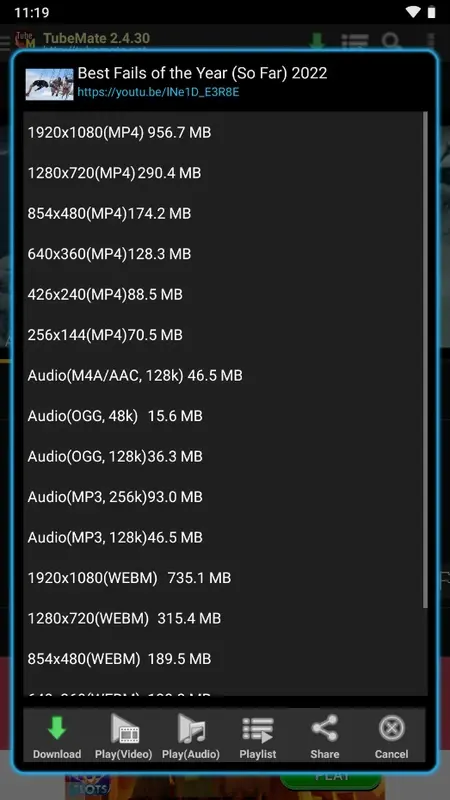 - تحميل الفيديو بجودات مختلفة