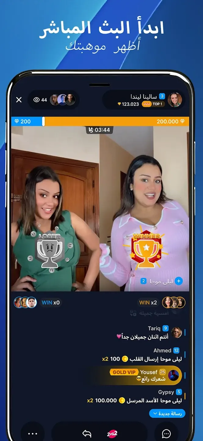 - دردشة فورية مع البث المباشر