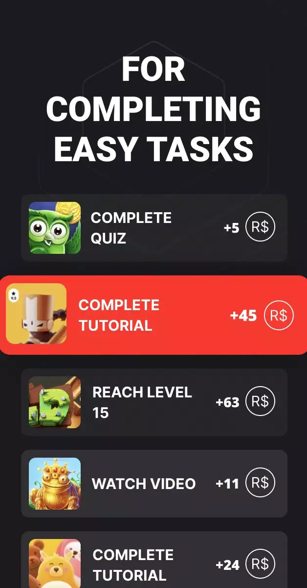 يوفّر التطبيق طرقًا مختلفة للكسب مثل إكمال العروض، تنفيذ الأنشطة المتاحة والتفاعل مع المحتوى المعروض.