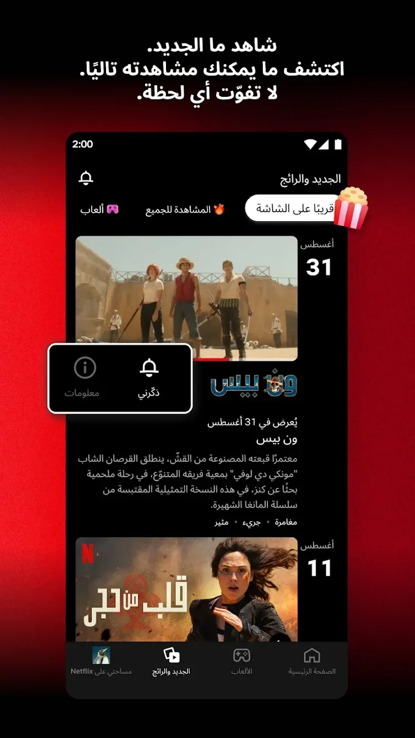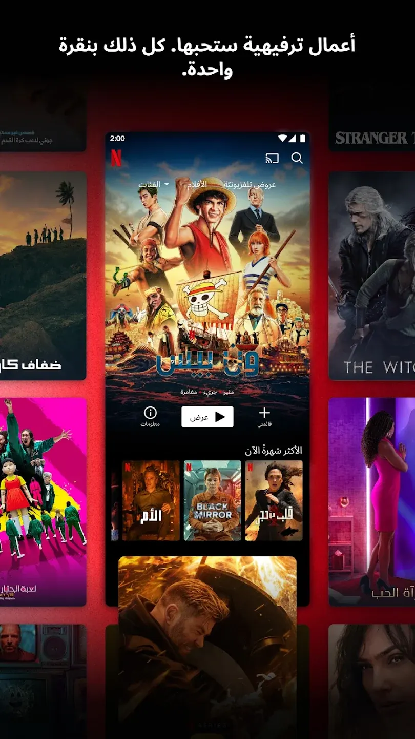 نتفليكس هو أحد أبرز خدمات البث التي تقدّم آلاف الأعمال السينمائية والمسلسلات الوثائقية والحصرية مباشرة على جهازك الأندرويد. سواء كنت تبحث عن أفلام شهيرة، مسلسلات حائزة على جوائز أو إنتاجات أصلية جديدة، فإن مكتبة نتفليكس متجدّدة وتلائم جميع الأذواق.