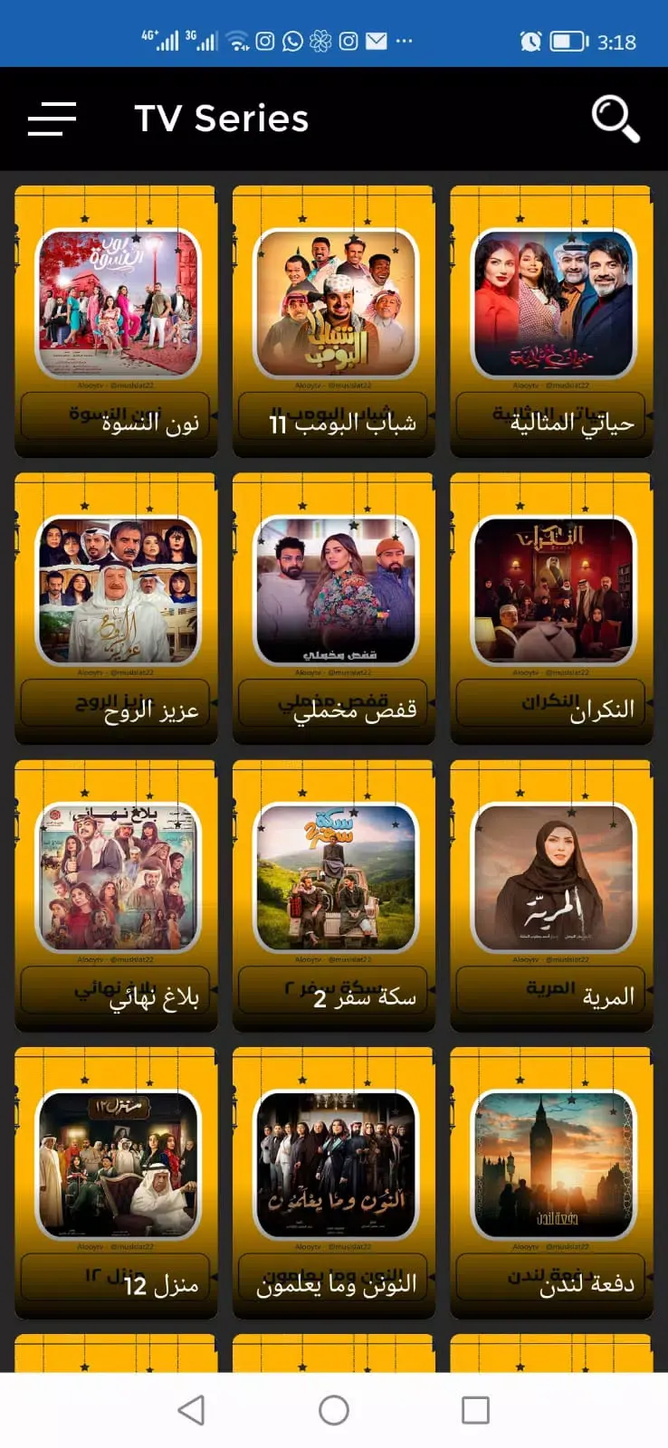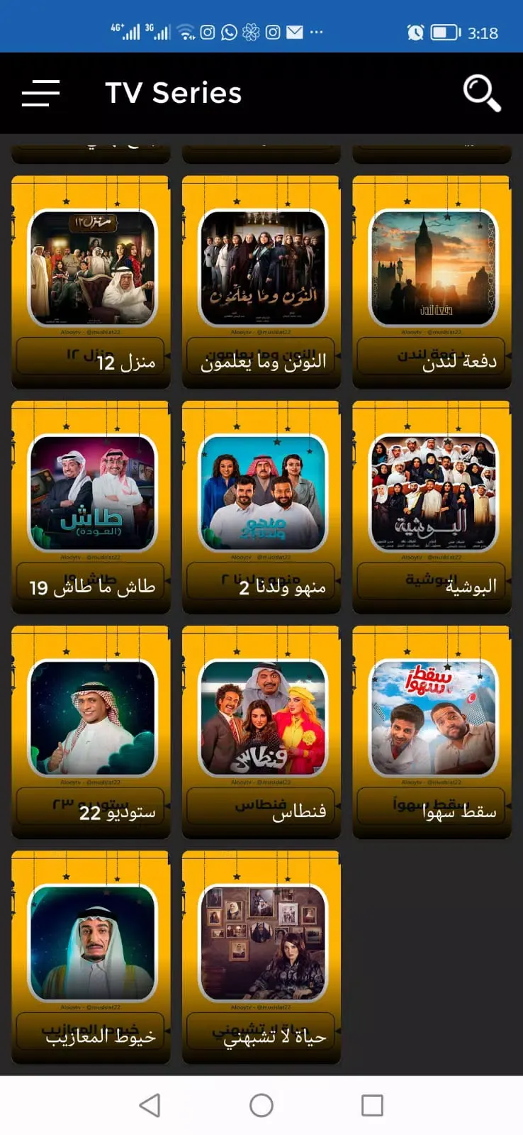 يوفّر التطبيق مجموعة من القنوات التلفزيونية المباشرة ضمن قائمة منظمة.