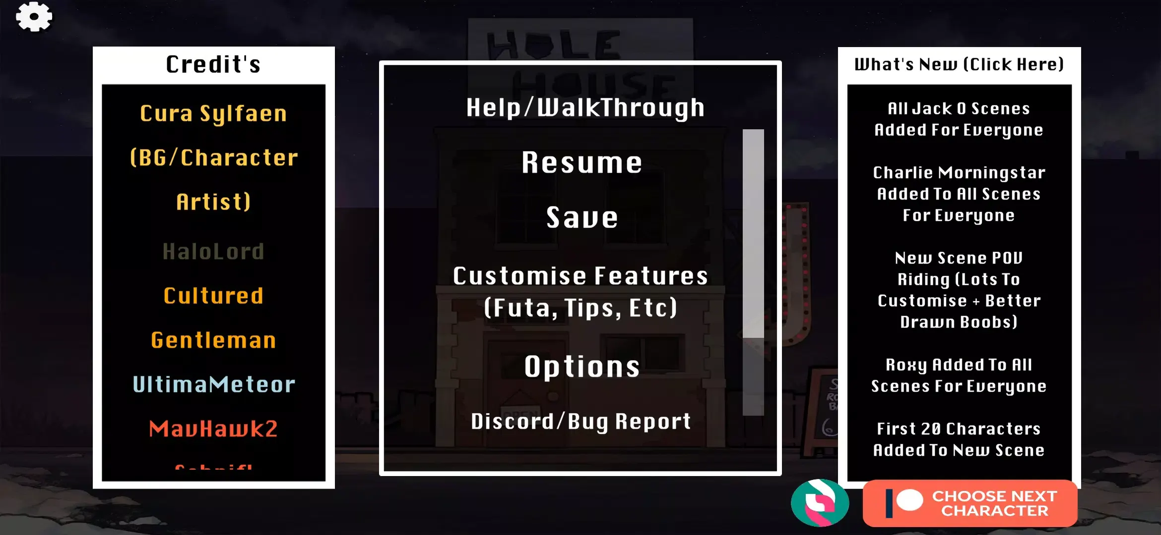 Hole House هي لعبة تعتمد على القصة وتطوّر الأحداث من خلال تفاعل اللاعب مع الشخصيات والحوارات.