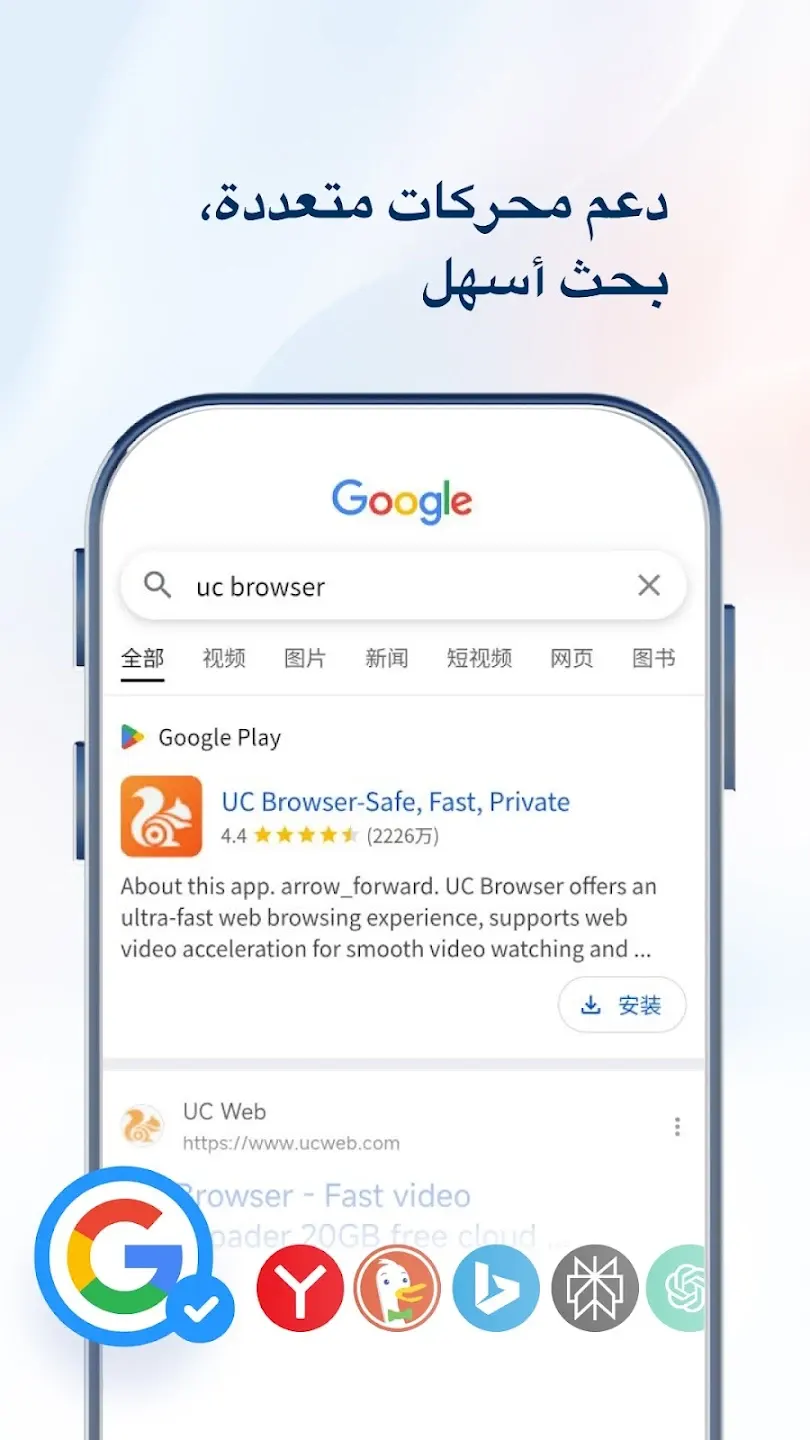 يُعد UC Browser واحدًا من أشهر المتصفحات على أجهزة Android، حيث يوفر تجربة تصفح سريعة وسلسة مع استهلاك منخفض للبيانات. تم تصميم التطبيق خصيصًا لتقديم أداء قوي حتى على الأجهزة ذات المواصفات المتوسطة أو الاتصال البطيء بالإنترنت.