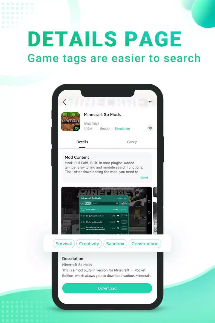 يتضمن التطبيق مجموعات متنوعة من الألعاب المعدّلة والتطبيقات المحسّنة، مع تفاصيل واضحة لكل إصدار مثل حجم الملف والإضافات المتاحة داخل الـMOD. يمكنك العثور على محتوى غير موجود في المتاجر التقليدية بسهولة وسرعة.
